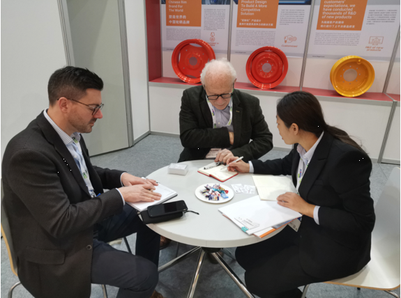 展會期間,展位參觀者絡繹不絕,公司接待了來自德國、西班牙、意大利、英國、法國、荷蘭等國家的新老客戶。我司展出的自主設計開發(fā)的滾壓鋁輪轂、高品質農機輪輞由于其獨特的工藝及精美的外觀,給客戶留下了深刻的印象,受到眾多海外買家的關注與青睞。通過現場銷售及工程人員對產品各類特點及優(yōu)勢的講解,客戶對于風馳的產品有了更進一步的了解,不僅有效的推廣了風馳品牌,使得更多農機領域經銷商,廠商認識風馳的產品,建立合作模式。同時,借助此次機會,公司還對歐洲農機領域進行了解和分析,為進一步擴大歐洲市場提供指向標。