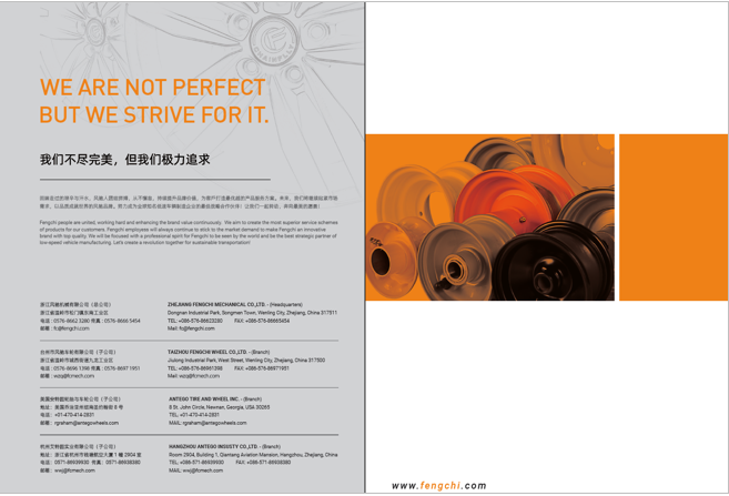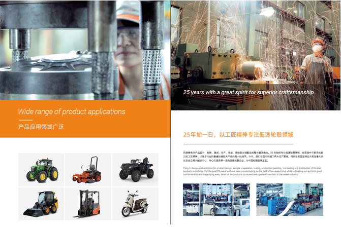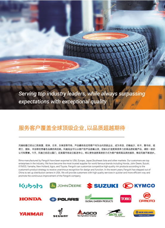 浙江風(fēng)馳機(jī)械有限公司,成立于1994年,伴隨著時(shí)間的飛逝,一直以工匠精神專注生產(chǎn)非公路低速車輛輪轂,在董事長潘衛(wèi)民的英明帶領(lǐng)下,風(fēng)馳以自信、沉穩(wěn)、堅(jiān)實(shí)的腳步,企業(yè)逐步成為了世界500強(qiáng)合作伙伴、申請(qǐng)了企業(yè)獨(dú)有的輪輞品牌、創(chuàng)立了旗下5家子公司、獨(dú)創(chuàng)特殊工藝、產(chǎn)品革新?lián)Q代,一直以實(shí)現(xiàn)“引領(lǐng)低速車輪發(fā)展,為中國制造正名”的使命及成為“全球知名低速車輛制造企業(yè)的最佳戰(zhàn)略合作伙伴”為愿景而一直努力著。