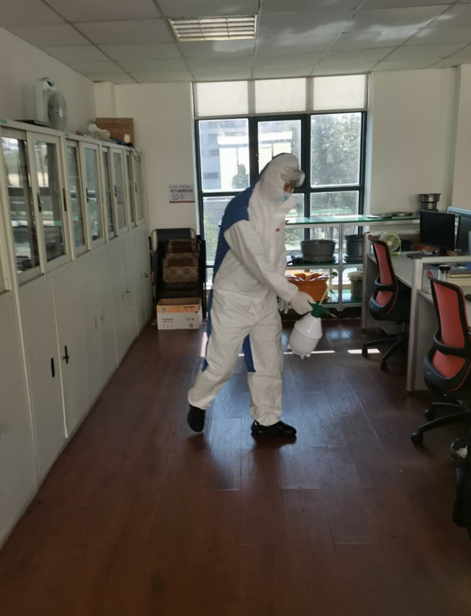 保障每位員工的健康是復(fù)工生產(chǎn)不容忽視的重要部分,充足的防疫物資是打好復(fù)工持久戰(zhàn)的關(guān)鍵。采購組積極準備各類防疫物資,確保了口罩、酒精、消毒液、噴壺等發(fā)放至生產(chǎn)車間和員工手中。此外,公司黨支部黨員勇當消毒先鋒提前做好辦公區(qū)、生產(chǎn)及作業(yè)場地等公共區(qū)域的消毒工作,以降低病毒的滋生能力和傳染力。