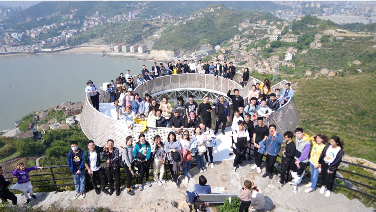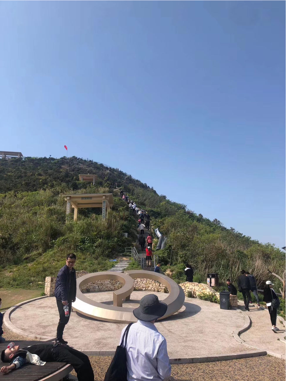 一個一個緊緊跟隨著,充滿著激情,一步一往上攀登,最終抵達綠道至高點:網(wǎng)紅觀景臺,并在這里留下勝利的笑影。海風(fēng)陣陣,吹干了路程中留下的汗水。站在最高點上放眼望去,著實有“一覽眾山小”的感覺。這讓大家感觸到,只有奮勇攀登,堅持到底,才可一覽無限風(fēng)光!