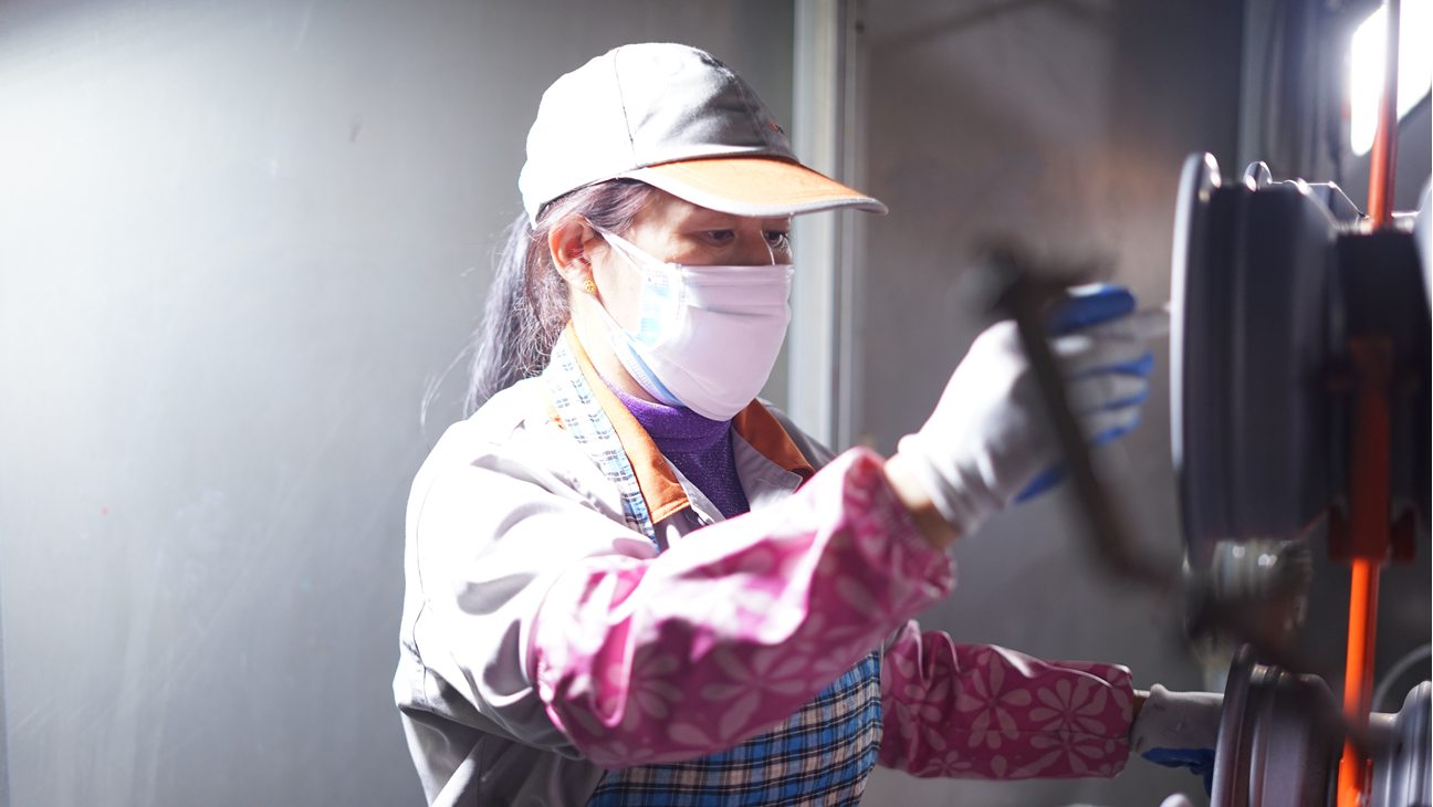“剛開始進入崗位的時候,還是有些不太適應,只能強迫自己融入團隊,不斷提升自己技能,才能做好這個崗位。我在打磨產(chǎn)品的過程當中,也慢慢發(fā)現(xiàn)只有精益求精打磨出來的產(chǎn)品才能夠使下一道工序減少不良的產(chǎn)生,也給其他工序帶來一定的幫助,自己也感到很快樂。特別是在工作時幫助他人不斷提高工作質(zhì)量,不斷專研打磨技巧,怎么樣用最快捷最方便的打磨技巧打磨產(chǎn)品,感覺到自己的進步,于是慢慢的就喜歡上這份工作?!边@是吳愛芳這份工作的簡單總結(jié)。