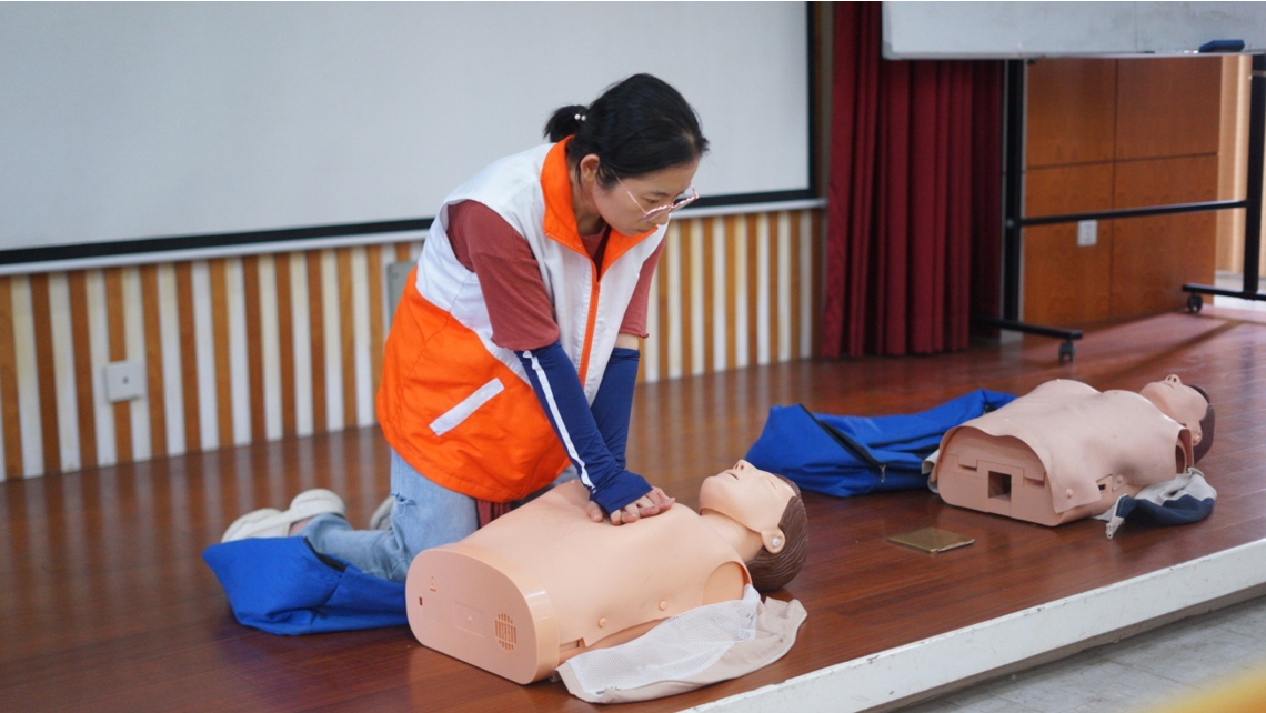 老師傳授了消創(chuàng)傷的止血與包扎方法。包扎考驗(yàn)的是救護(hù)者的耐心與動(dòng)手能力,不同的部位需要不同的包扎技巧。在整個(gè)包扎知識(shí)傳授和練習(xí)過(guò)程中,整個(gè)現(xiàn)場(chǎng)充滿了歡聲笑語(yǔ)。在輕松的環(huán)境下,黨員們學(xué)到了創(chuàng)傷止血與包扎的基本方法。老師講完包扎、骨折固定等實(shí)用的急救技術(shù)后,大家還向老師提出傳授排除異物梗阻的方法,老師耐心地講解示范成人和兒童異物梗阻的操作現(xiàn)場(chǎng)實(shí)操練習(xí);老師還準(zhǔn)備了仿真人模,大家在老師的指導(dǎo)下依次在仿真人模上演練心肺復(fù)蘇、氣道異物梗阻清理、人工呼吸等技術(shù)。在場(chǎng)的黨員們積極參與,老師也現(xiàn)場(chǎng)糾正了員工的一些錯(cuò)誤做法。
