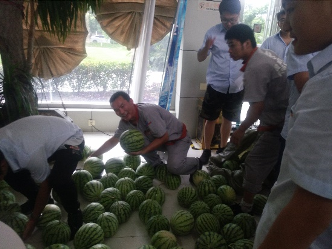當天,隨著鎮(zhèn)工會運輸車的開進,企業(yè)各部門組織員工積極幫忙搬運,各個臉上洋溢著喜悅,大家一起幫忙將西瓜、飲品、防暑降溫等用品送達到員工手中,這意味著將公司的這份關懷傳遞到了員工們的心中,給炎炎夏日帶來了一縷清涼。