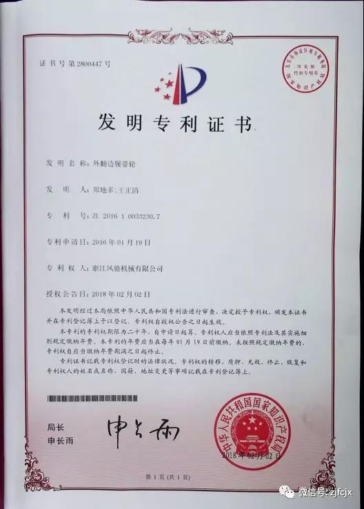 2018年2月榮獲“外翻邊屢?guī)л啞卑l(fā)明專利證書