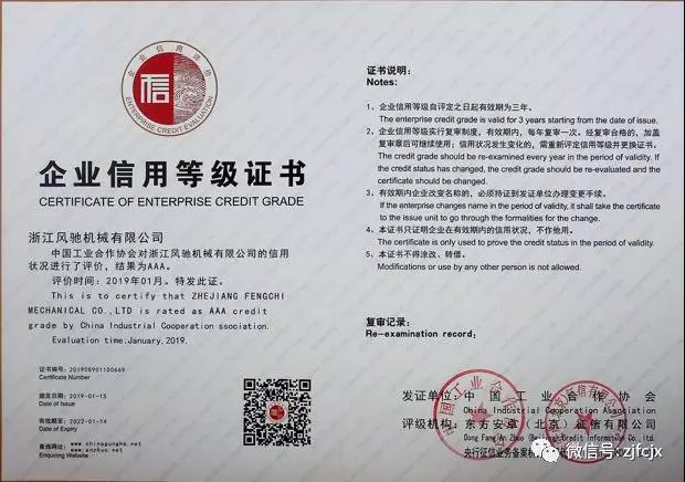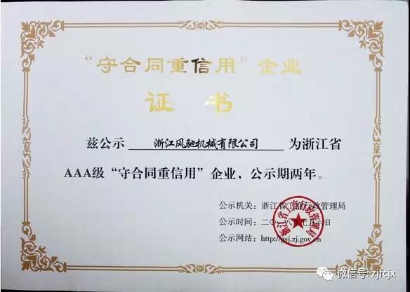 2018年7月榮獲浙江省工商行政管理局頒發(fā)的浙江省AAA級“守合同重信用”